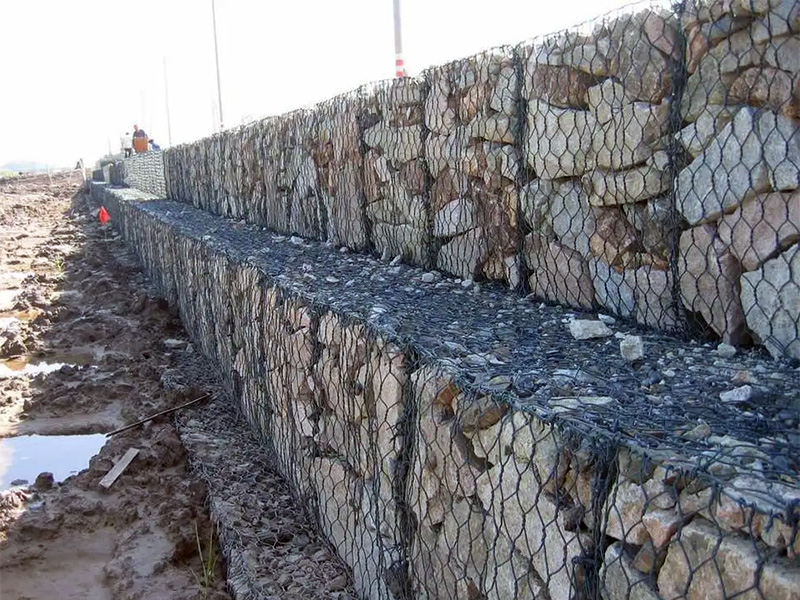2.PVC鋅-5%鋁-混合稀土合金鋼絲:在鋅-5%鋁-混合稀土合金鋼絲的表面涂裝PVC保護(hù)層,然后編織成六角鐵絲網(wǎng)。這層PVC保護(hù)層將會(huì)大大增加在高污染環(huán)境中的保護(hù),并且通過(guò)不同顏色的選擇,使其能和周圍環(huán)境融合。